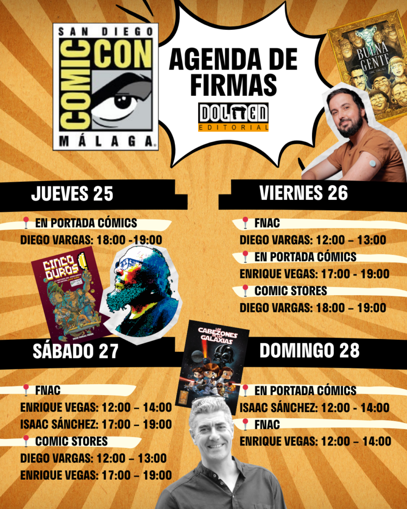 Este año la Comic Con de Málaga contará con la presencia de algunos de nuestros autores más queridos, que participarán en charlas y sesiones de firmas en diferentes puntos de la ciudad. Aunque no tendremos stand propio, podrás encontrarlos en librerías y espacios colaboradores.