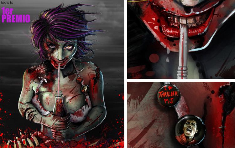 Leonardo Adrián Pacciarotti, de Valencia. Con su dibujo titulado: Zombie Girl 01. Una idea original y bien llevada. Este artista nos deleita con una gran técnica y una presentación impecable.