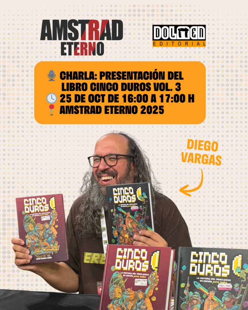 Este año, Dolmen Editorial estará presente de la mano de Diego Vargas, autor de la colección Cinco duros. La historia del videojuego en España para todos, con una charla dedicada a la historia, curiosidades y legado del videojuego clásico español.