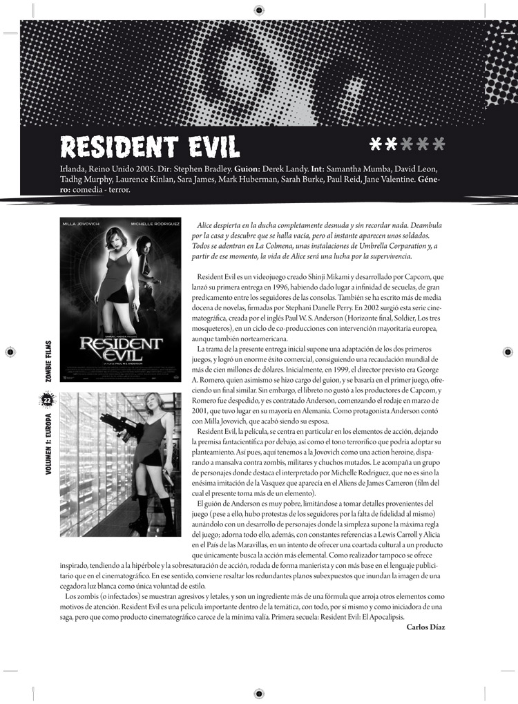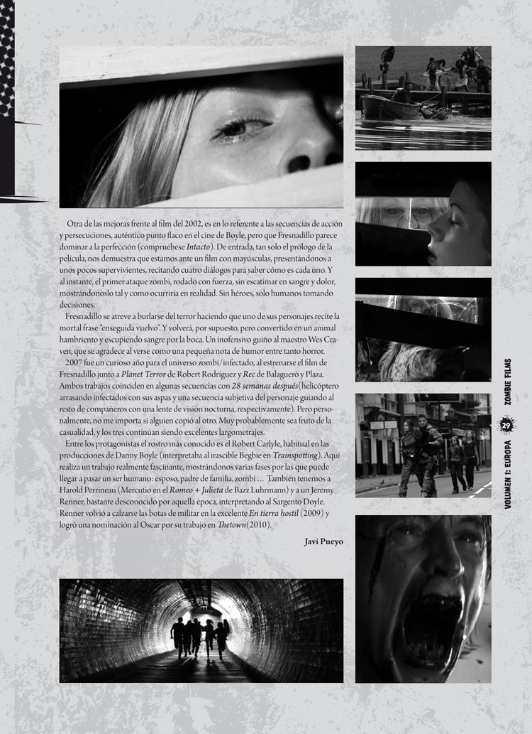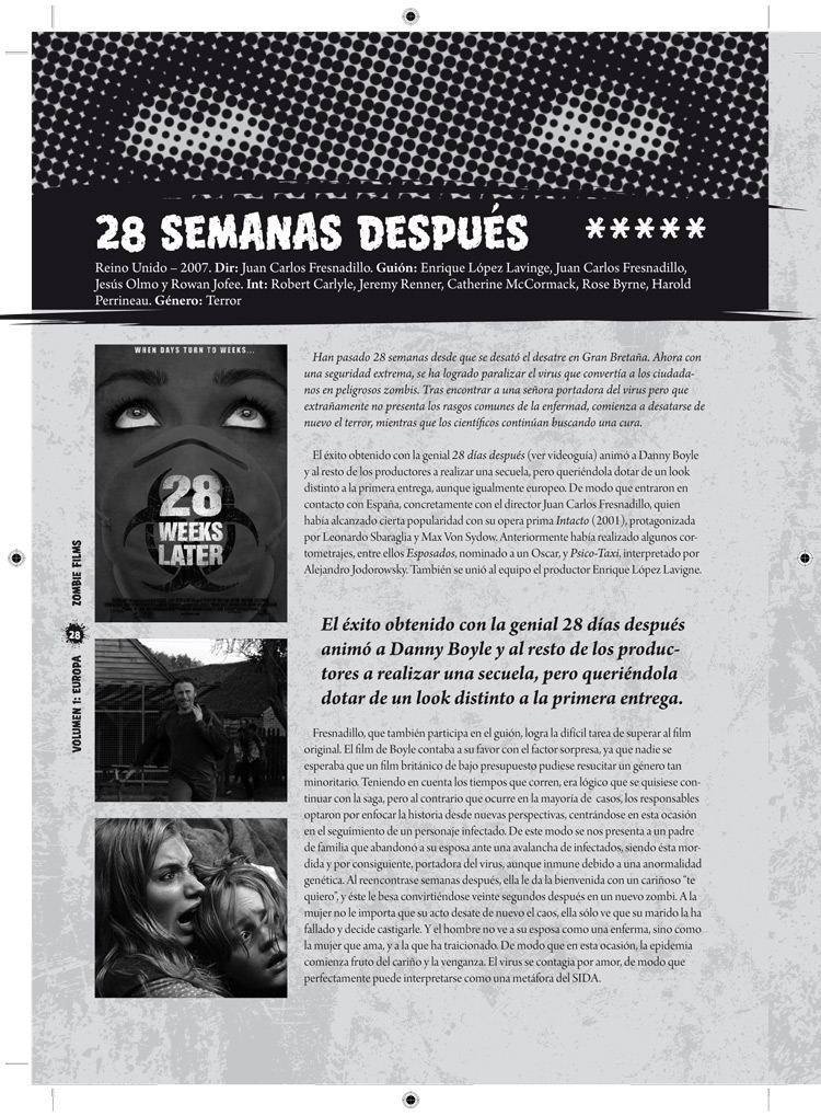 Fichas y comentarios de todas las películas de interés y cierta importancia que han marcado los límites de este género encumbrándolo a lo que es hoy en día, desde las más importantes a las menos conocidas. Películas británicas, españolas, francesas, italianas, alemanas, holandesas, noruegas, etc, desde los años 60 hasta la actualidad: Nueva York bajo el terror de los zombies, Pánico en el Transiberiano, 28 días después, Rec, Zombis Nazis, Zombiegore, La cruz del diablo, Demons, No profanar el sueño de los muertos o Beyond Re-Animator son sólo algunas de las más de cien películas analizadas en este primer volumen, que se completará con un segundo que analizará el resto de películas realizadas fuera de Europa.