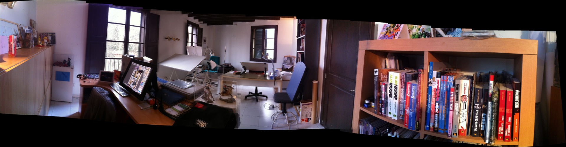 Tercero y ático sin ascensor y piso con vigas vista son los nuevos emplazamientos de la editorial (que comparte estudio con dos allegados profesionales del mundo del comic como son Paco Díaz y Guillem March, relacionados en el pasado en lo profesional y personal con la editorial).
