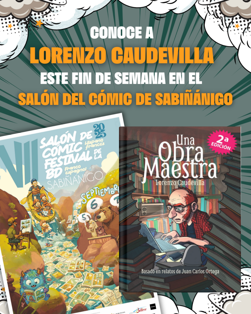 Además, este fin de semana podrás encontrarte con el autor en persona. Lorenzo Caudevilla estará presente en el Salón del Cómic de Sabiñánigo, donde firmará ejemplares de Una obra maestra el sábado.