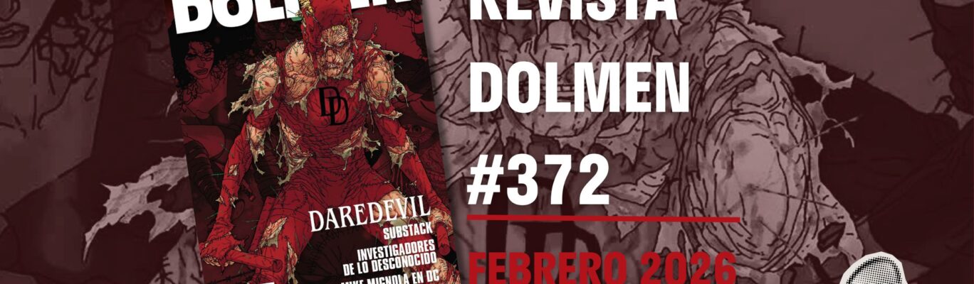 La segunda revista Dolmen de este 2026 se presenta con esta espectacular portada de Steve McNiven y protagonizada por Daredevil. Y es que en el interior de este número hablaremos largo y tendido del Hombre sin Miedo, quien llevaba sin aparecer por estas páginas demasiado tiempo. Oportunidad perfecta para reflexionar sobre las contribuciones de Chip Zdarsky, Marco Checchetto o Saladin Ahmed a la mitología del héroe Marvel.
