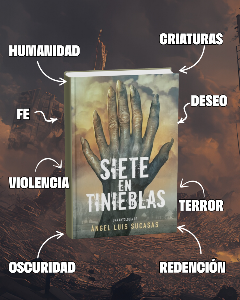 Una niña que dibuja dioses que luego existen. Dos hermanos malditos por un videojuego. Un blanco y un negro, enamorados y policías, contra los zombis de ojos de luna. Una bruja que transforma tu carne en cosas hermosas. El rey de Los Ángeles y la droga del fin del mundo. Una familia de hermanos obligados a suicidarse en el nombre de Dios Padre. Un viejo, una gasolinera y una mujer que nunca pestañea en el sótano. Siete en tinieblas. Siete relatos que arrancarán la piel de tu realidad y te harán volver a nacer.