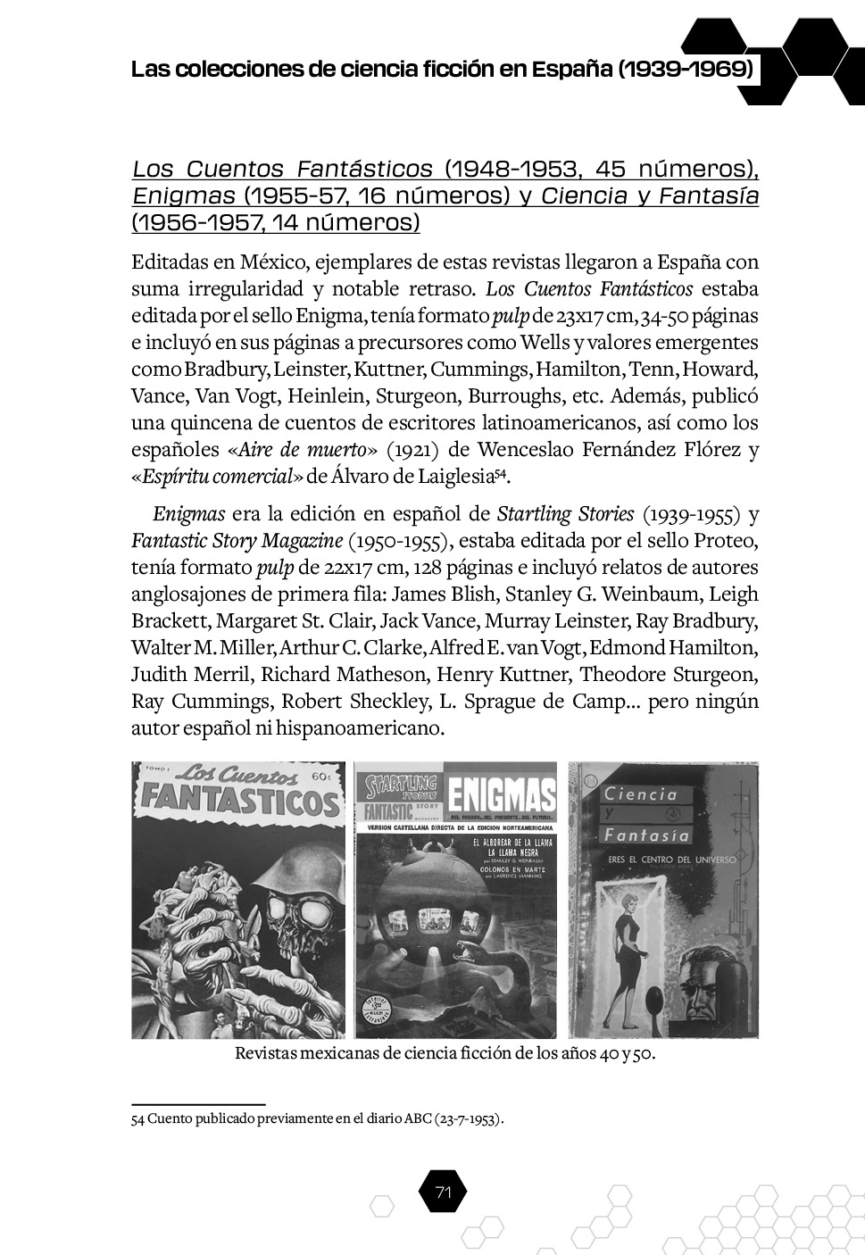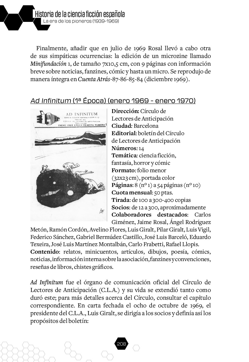Este volumen, subtitulado La Era de los Pioneros, analiza este género de forma detallada en el periodo comprendido entre 1939 y 1969, abarcando desde el despegue de la narrativa de ciencia ficción tras la Guerra Civil hasta el año en el que se celebró la primera convención de aficionados.