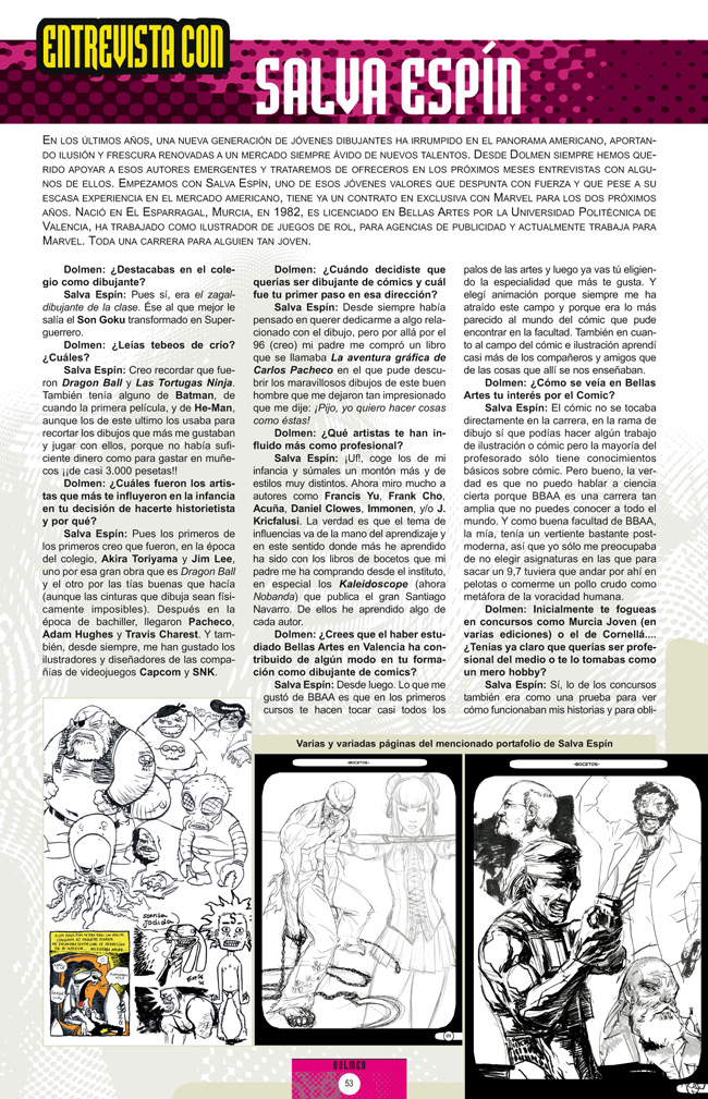 Además, artículo sobre Nova y entrevista a Salva Espín, más columnas de opinión de Joan Navarro (dedicada a la edición de Planeta del Capitán Trueno), Julián Clemente (sobre la crisis de ventas de los 90 que casi acaba de verdad con la industria), Jaume Vaquer (sobre el Salón de La Coruña) y Peter David (sobre los cómics realizados por él que no “suscitaron” en su momentos la reacción que esperaba).