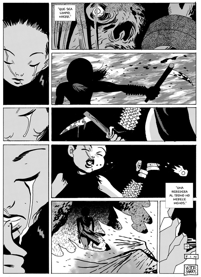 Victor Santos: Siempre trabajo con esa premisa, para que los lectores puedan incorporarse a la historia en cualquier momento. Muchas de las historias que publico por entregas no son necesariamente cronológicas, a menudo el lector tiene que ordenarlas en su cabeza, así que de esta manera le animo a que pueda comprar libremente cualquier tomo y si de paso le “pico” para que empiece a indagar sobre la serie, pues mejor. Si no, confío en que haya pasado un rato de lectura agradable.